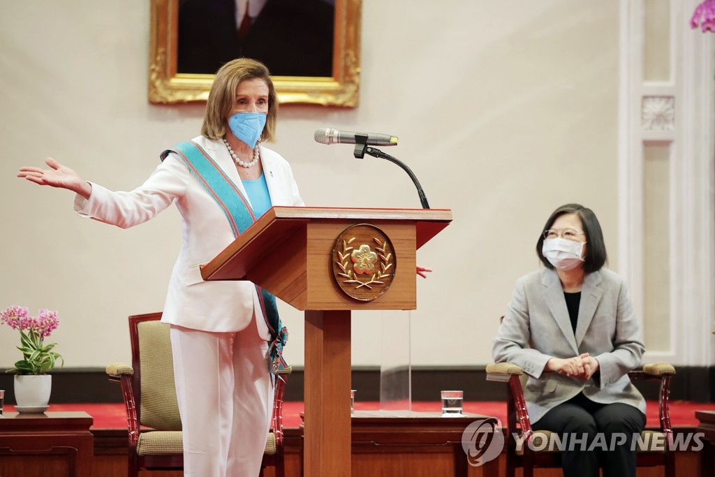 (도쿄=연합뉴스) 박성진 특파원 = 낸시 펠로시 미국 하원의장은 중국이 '대만 포위' 군사훈련을 벌인 데 대해 "아마 중국은 우리의 (대만) 방문을 핑계로 삼고 있다"고 비난했다.