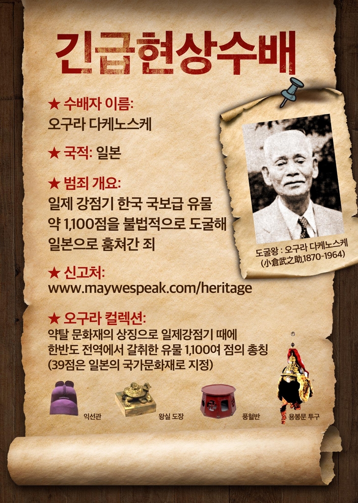 오구라(1870∼1964년)는 일제 강점기 한국 국보급 유물 1천100여 점을 불법적으로 도굴해 일본으로 훔쳐 갔다.