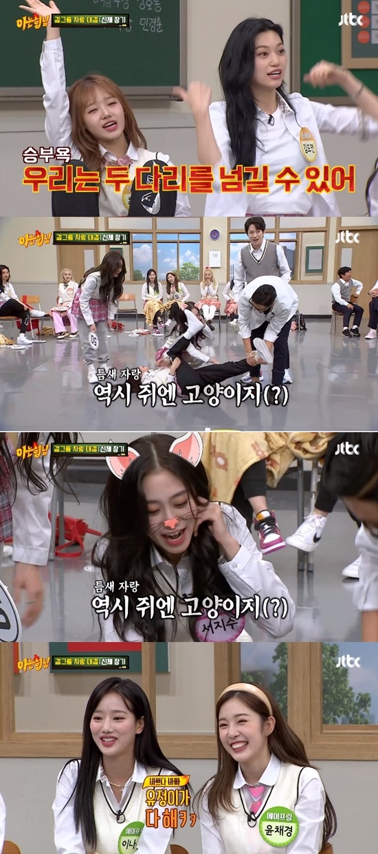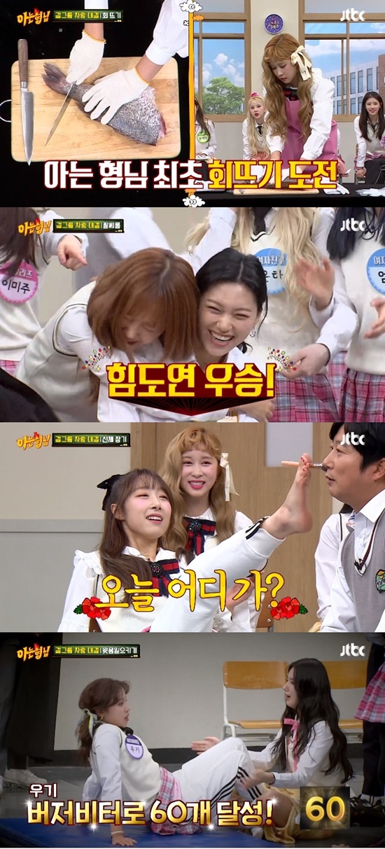 31일 방송된 JTBC '아는 형님'에 러블리즈의 지수·미주, 여자친구 은하·엄지, 에이프릴 채경·나은, 우주소녀 수빈·다영, 모모랜드의 주이·낸시, 위키미키 유정·도연, (여자)아이들 미연·우기가 출연했다.