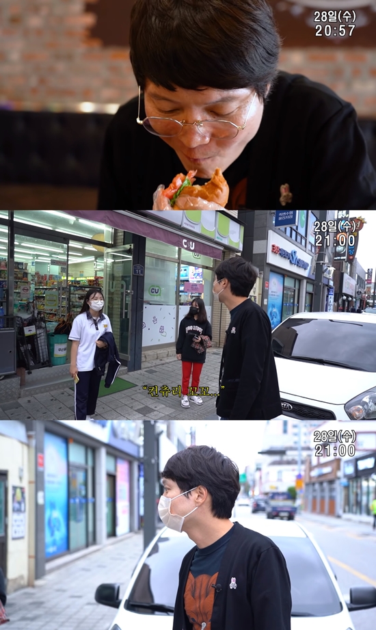 지인 어머니의 배웅을 받으며 펜션을 떠난 신정환은 뜻밖의 목적지로 향했다. 서울이 아닌 울진 시내로 방향을 튼 것. 신정환은 "한우가 들어갔다"며 제작진들과 수제 햄버거 가게에서 점심을 해결했다.
