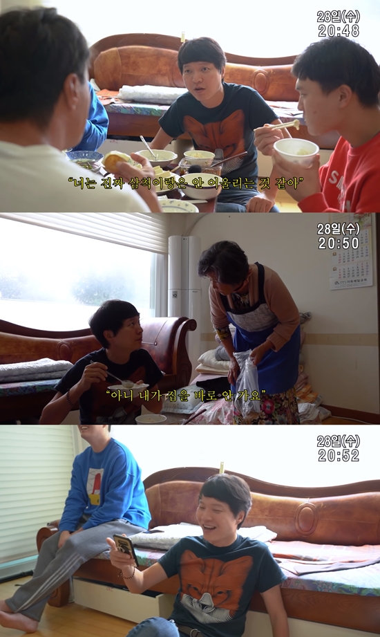 아침 식사를 마친 신정환은 제작진에게 상을 치울 것을 지시했다. 이에 솔비는 "정환 씨는 어깨가 좁아 제작진에게 꼰대처럼 시키기만 한다"며 내레이션으로 일침을 놨다.
