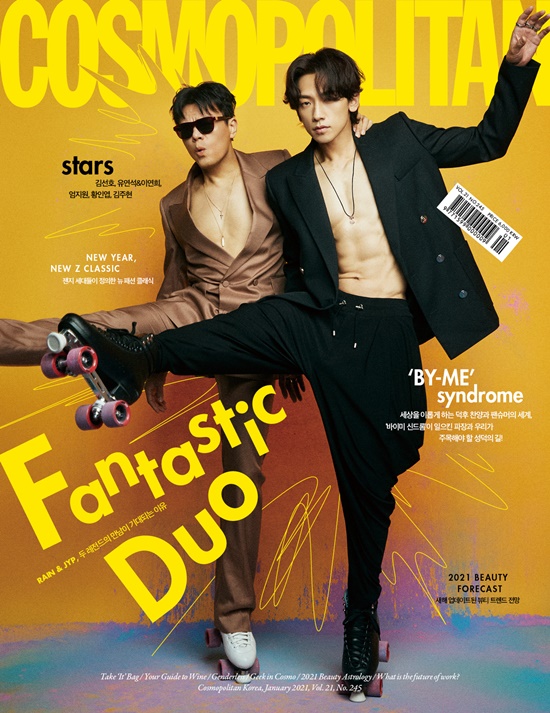 [엑스포츠뉴스 전아람 기자] 가수 박진영과 비가 '코스모폴리탄' 2021년 새해 1월호 커버 모델을 장식했다.