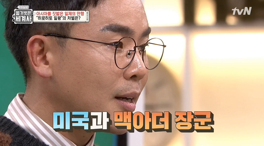 26일 방송된 tvN ‘설민석의 벌거벗은 세계사’에서는 맥아더 장군과 일본군의 관계에 대해 설명하는 설민석의 모습이 그려졌다.