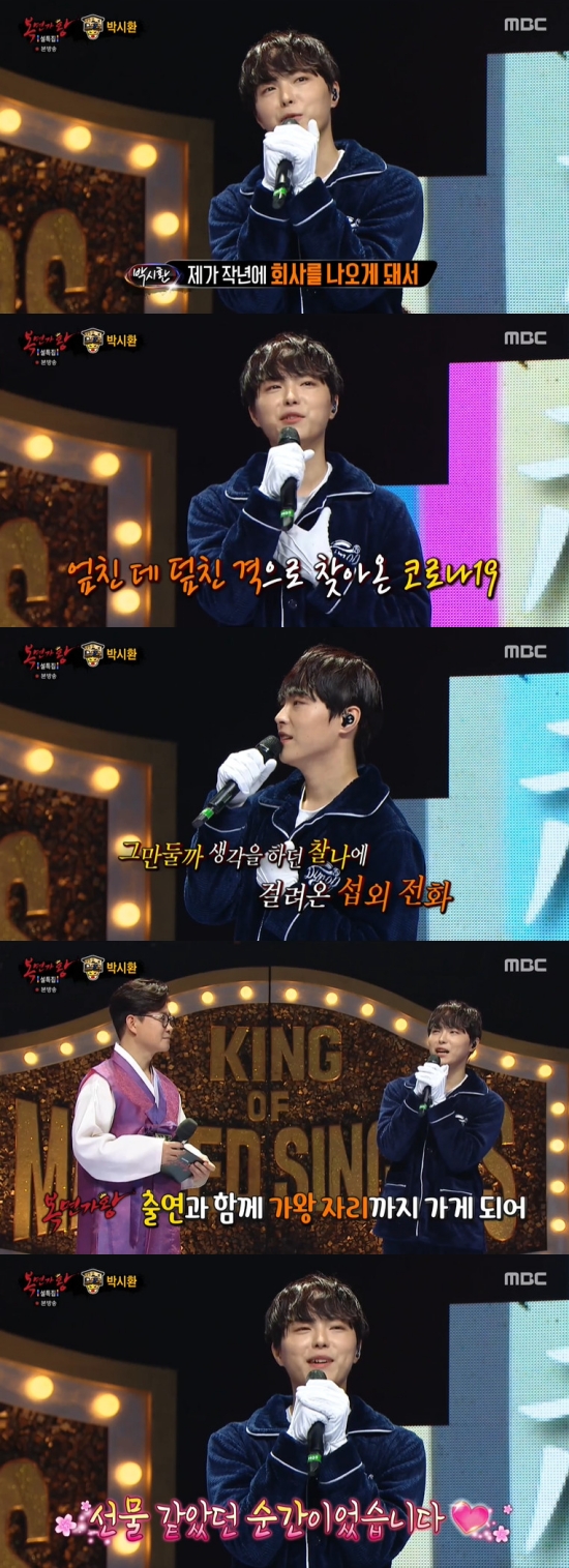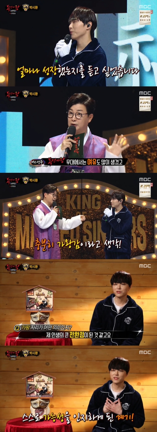 이후 박시환은 '가왕 자리가 어떤 의미인지?'라는 질문에 대해 "제 인생에 큰 전환점이다. 가능성이 있다는 것을 스스로 인지시켜주는 고마운 선물이었던 거 같다"라며 고백했다.