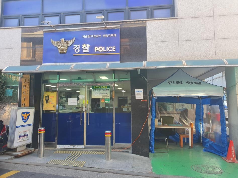 신림지구대 옆 공터에는 지난주 '민원 상담'이라는 글씨가 적힌 파란색 천막이 설치됐다. 앞으로 신림지구대를 찾는 민원인들은 지구대 내부가 아닌 천막 안에서 체온을 측정하고 문진표를 작성한 뒤 경찰관에게 상담을 받는다. 현행범 체포한 피의자는 인근 치안센터로 인계해 사건을 처리한다.