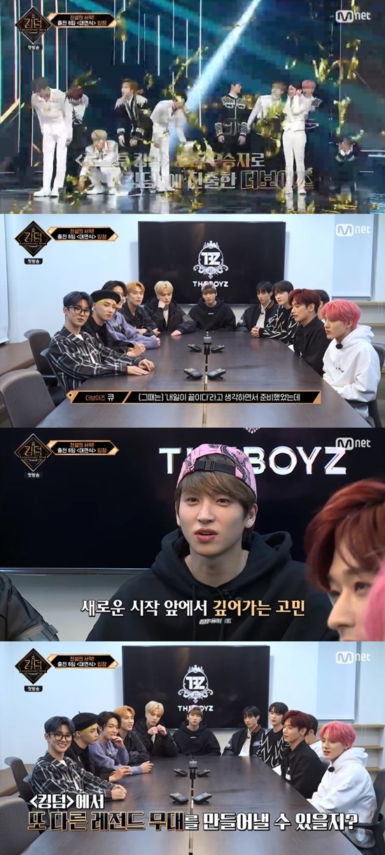 더보이즈는 이전 시리즈 '로드투킹덤'에서 우승하며 '킹덤'에 진출했다. 선우는 "살아남아야 되겠다고 생각했다"라며 떠올렸다. 큐도 "'내일이 끝이다'라고 생각하면서 준비했다"라고 회상했다.