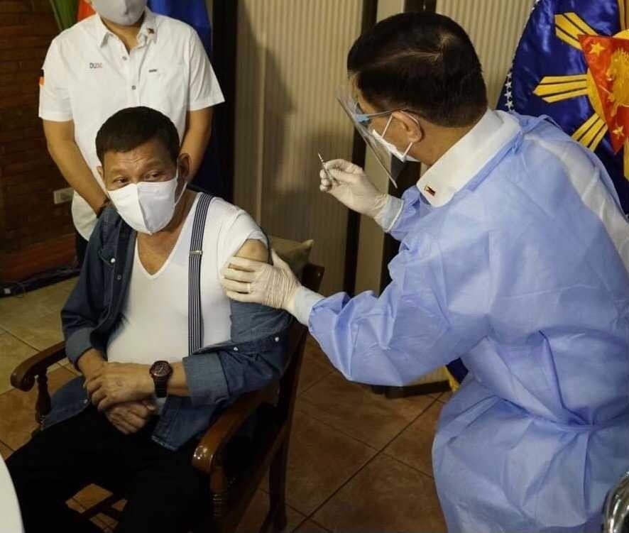 백신 접종 장면은 페이스북을 통해 생중계됐는데 프란시스코 두케 보건장관이 두테르테 대통령에게 직접 백신 주사를 놨다.