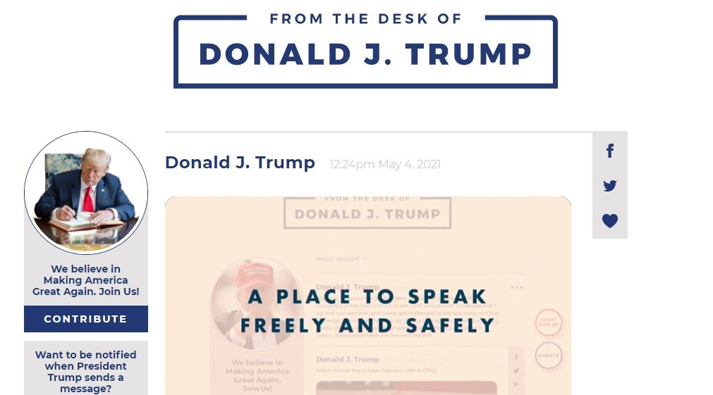 폴리티코는 새 블로그가 페이스북의 영향력에는 비할 바가 못 되지만 트럼프 전 대통령이 제한적으로나마 자기 생각을 지지자들에게 직접 전하도록 한다고 평가했다.