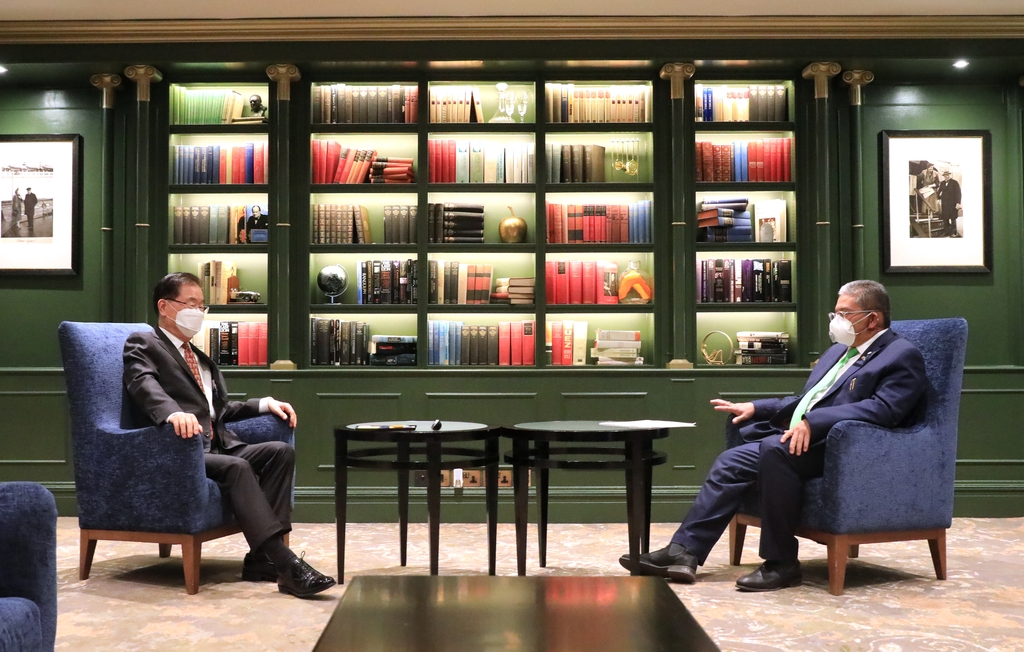 (서울=연합뉴스) 김동현 기자 = 정의용 외교부 장관은 4일(현시시간) 영국 런던에서 열린 주요 7개국(G7) 외교개발장관회의 참석을 계기로 에리완 유소프 브루나이 외교장관과 회담했다.
