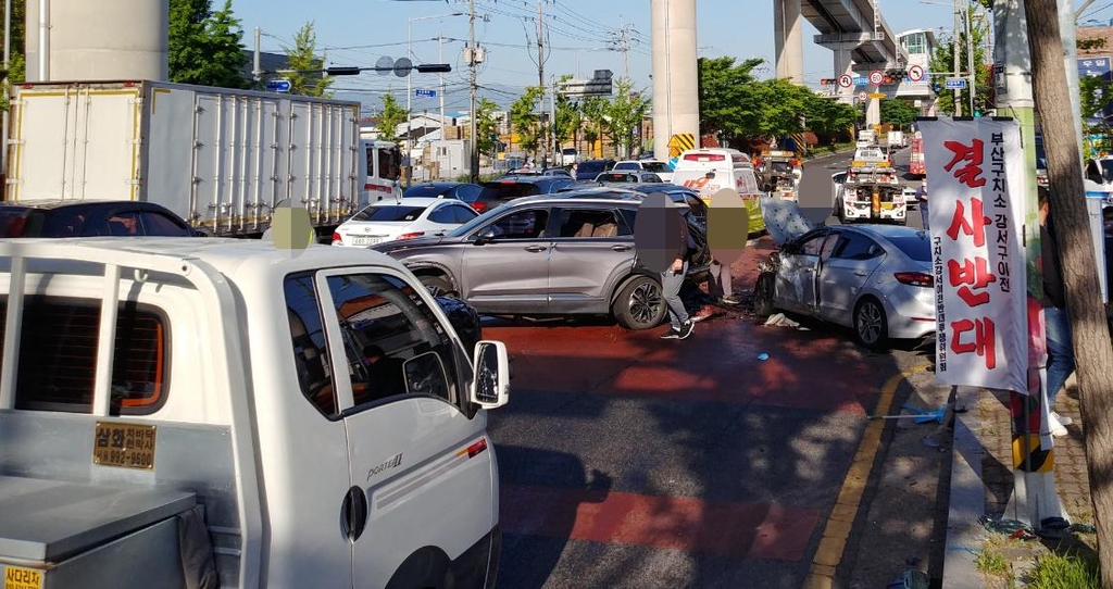 승용차가 신호대기 차량 향해 돌진…8중 추돌, 14명 부상