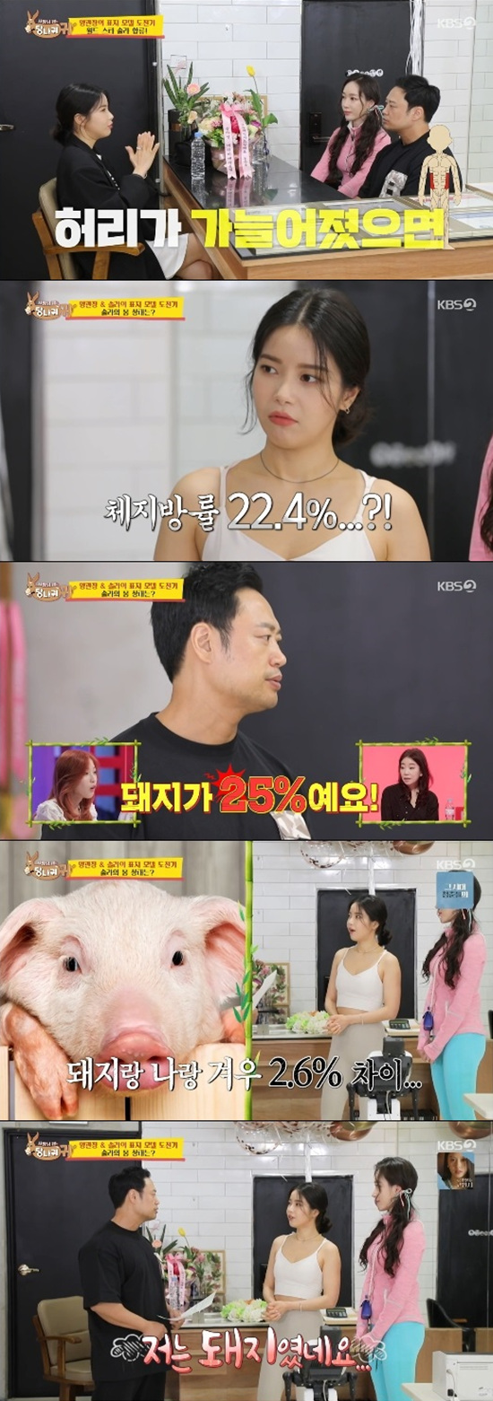 이에 양치승은 몸 상태를 체크하는 시간부터 가져보자고 했다. 솔라는 운동복으로 갈아입고 나와 체성분 측정을 했다. 솔라의 체지방률은 22.4%로 나왔다. 양치승은 "돼지가 몇 %인 줄 아느냐. 25%다"라고 말했다. 솔라는 충격 받은 얼굴로 "저는 돼지였네요"라고 말했다.