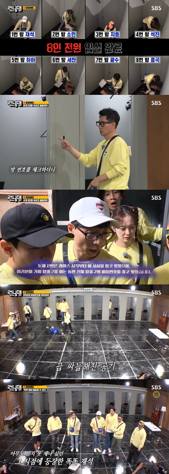 16일 방송된 SBS '런닝맨'에서 유재석, 지석진, 김종국, 하하, 이광수, 송지효, 전소민, 양세찬 등 8명의 멤버들은 '깡깡랜드'에 입성했다. 특히 멤버들은 1번부터 8번까지 이뤄진 각각의 밀실에 감금됐다.