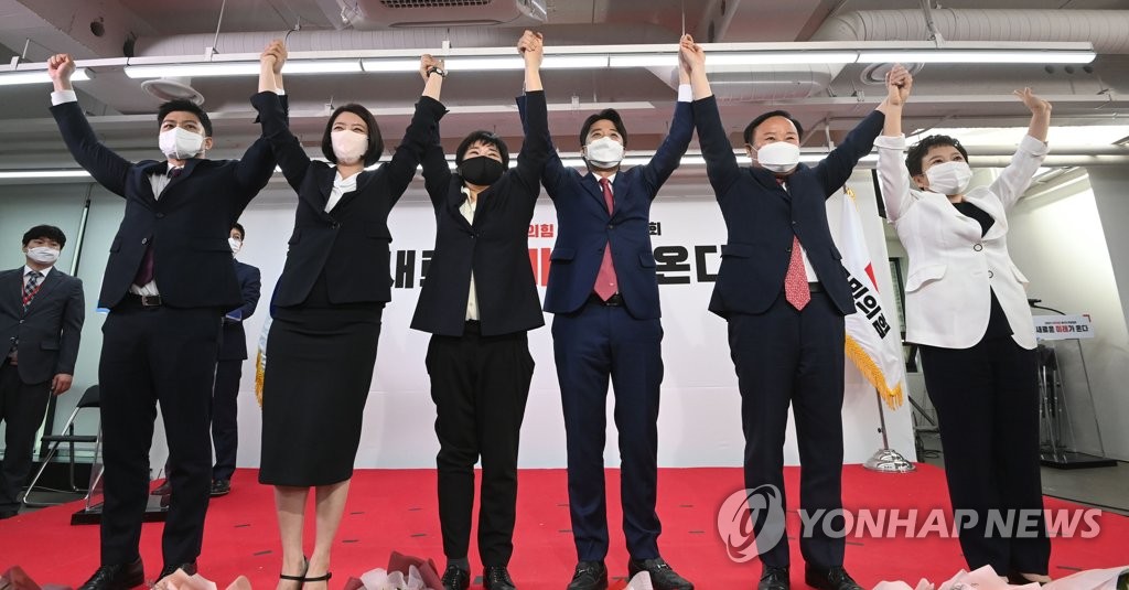 (서울=연합뉴스) 홍정규 이동환 기자 = 국민의힘 새 대표에 36세의 이준석 후보가 선출됐다.