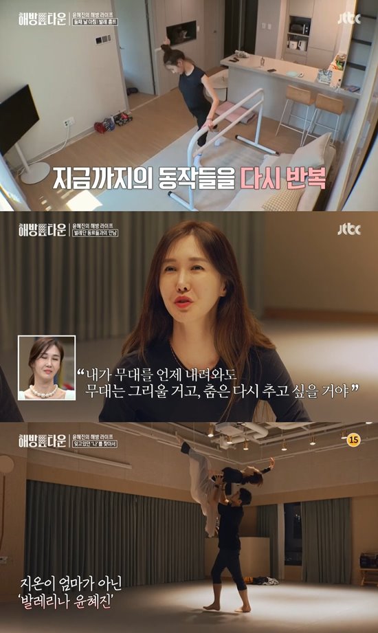 15일 방송된 JTBC '내가 나로 돌아가는 곳 - 해방타운'(이하 '해방타운')에서는 지온이를 낳고 발레리나로서의 삶을 포기했던 윤혜진이 다시금 토슈즈를 신는 모습이 그려졌다.