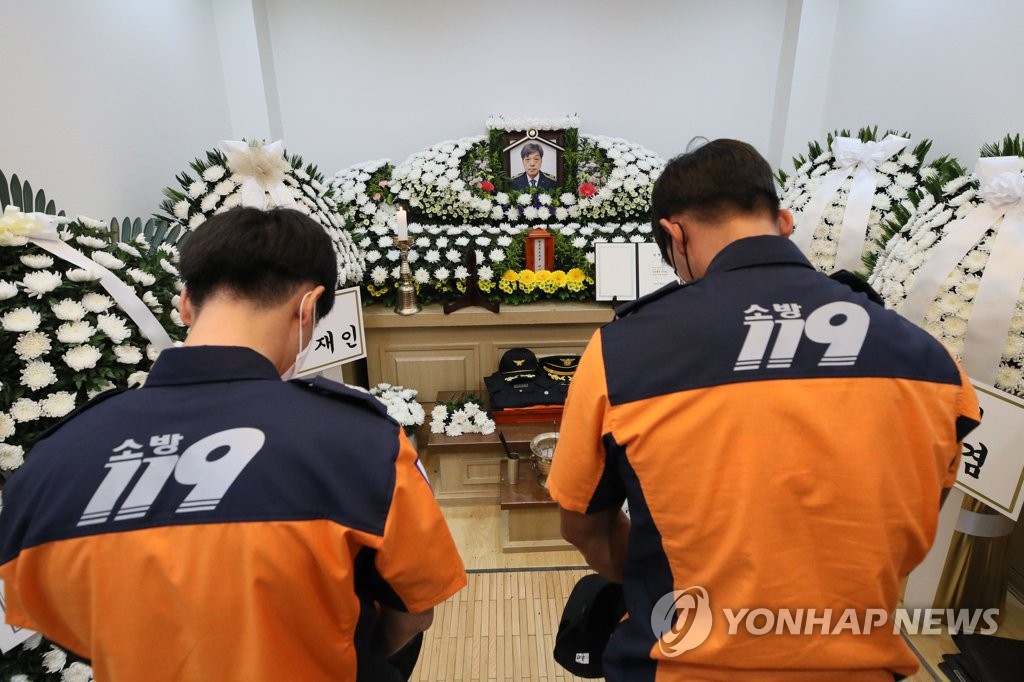 황기철 국가보훈처장도 조문을 마쳤고, 신열우 소방청장은 전날에 이어 김 대장의 빈소를 찾았다.