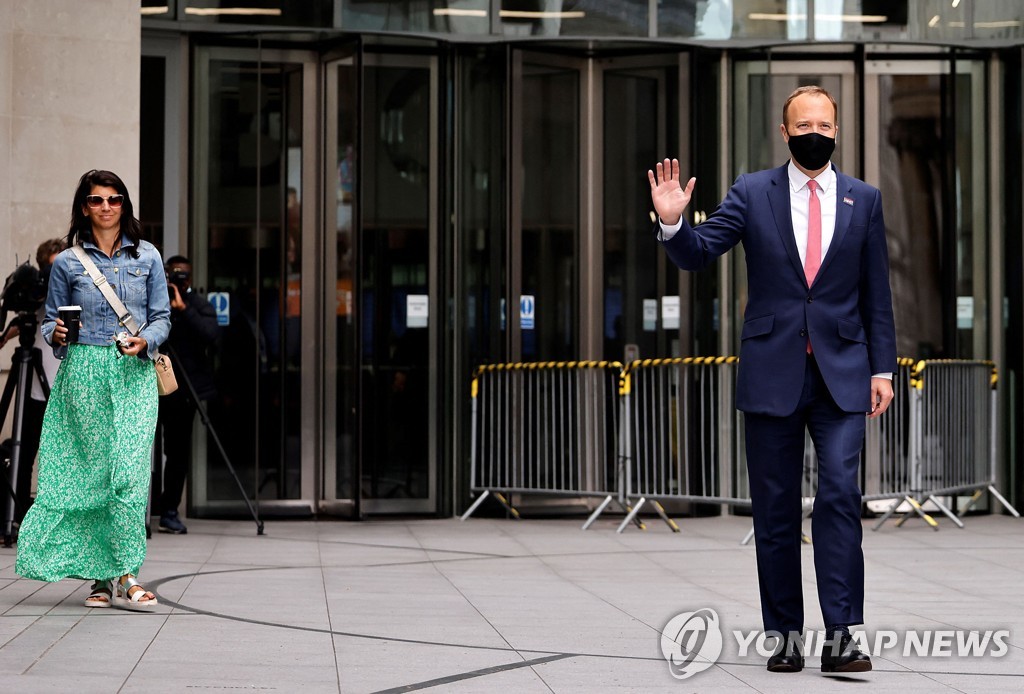 (런던=연합뉴스) 최윤정 특파원 = 델타 변이 확산 대응이라는 과제를 앞에 둔 맷 행콕 영국 보건 장관이 이번엔 여성 측근과 연인처럼 함께 있는 사진이 유출돼 곤경에 빠졌다.