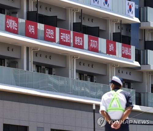 (도쿄=연합뉴스) 박세진 특파원 = 일본 정부는 16일 도쿄올림픽에 출전하는 한국 선수단이 선수촌 거주동 앞쪽에 이순신 장군의 어록에 바탕을 둔 응원 문구를 게시한 것과 관련해 '올림픽 정신'을 거론했다.