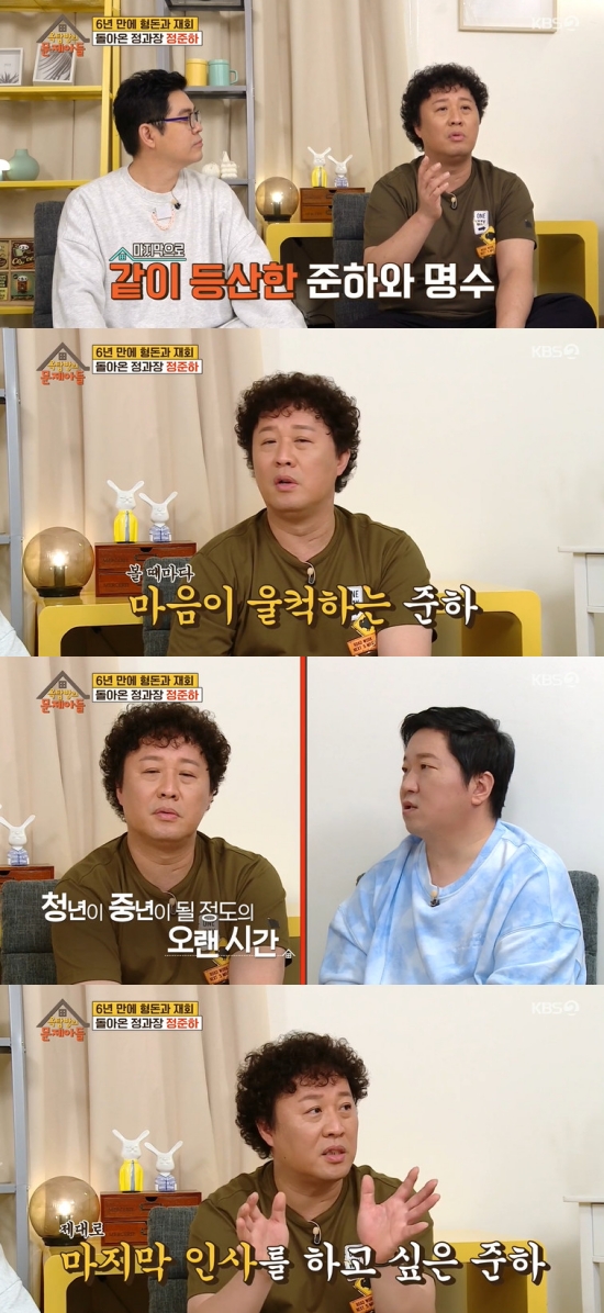 '비디오스타', '옥탑방의 문제아들'에서 '무한도전' 시절 이야기도 언급했다. 정준하는 "'무한도전'을 마음 속에서 떠나보내기 싫은지 마지막 회를 계속 안 보게 된다. '무한도전' 녹화장에 가는 꿈도 많이 꿨다. 지금이라도 다시 모인다면 제일 먼저 달려갈 것"이라며 애틋한 마음을 전했다.