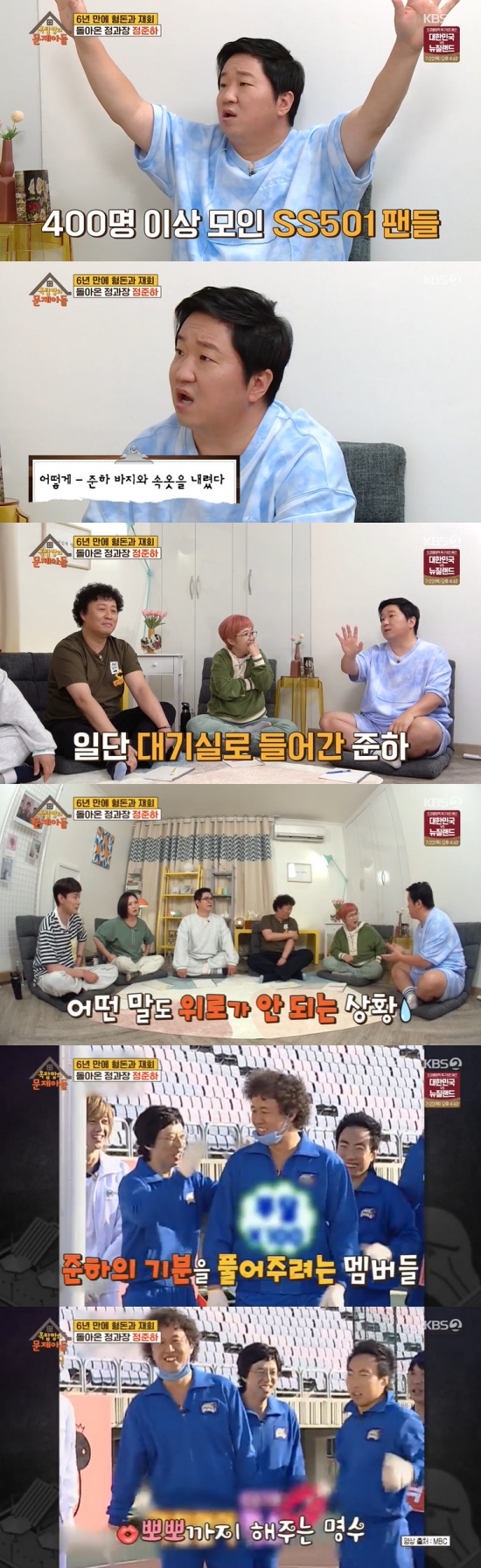 그런가 하면 박명수가 '무한도전' 촬영 중 자신의 바지와 속옷을 벗긴 일화도 털어놓았다. 정준하는 "편집이 됐을 거 아니냐. 그전까지 편한 분위기였다가 (촬영이 재개된 후) 나는 우울해져 있고 다들 '정준하, 정준하'라고 (응원을) 해주더라"라고 했다.