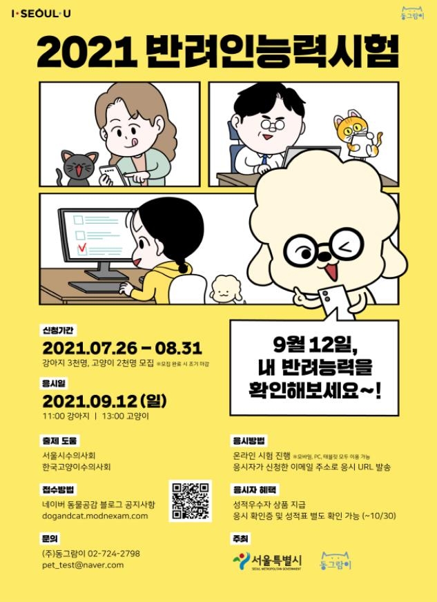 2019년 시작된 서울시 반려인 능력시험은 반려동물을 키우는 반려인이 꼭 알아야 할 내용을 질병·사회화 등 4개 영역으로 나눠 검증한다. 1회 시험에는 강아지 부문만 있었으나 지난해 2회 시험부터 고양이 부문이 추가됐다. 1회 시험에는 189명, 2회 시험에는 1천4명이 응시했다.