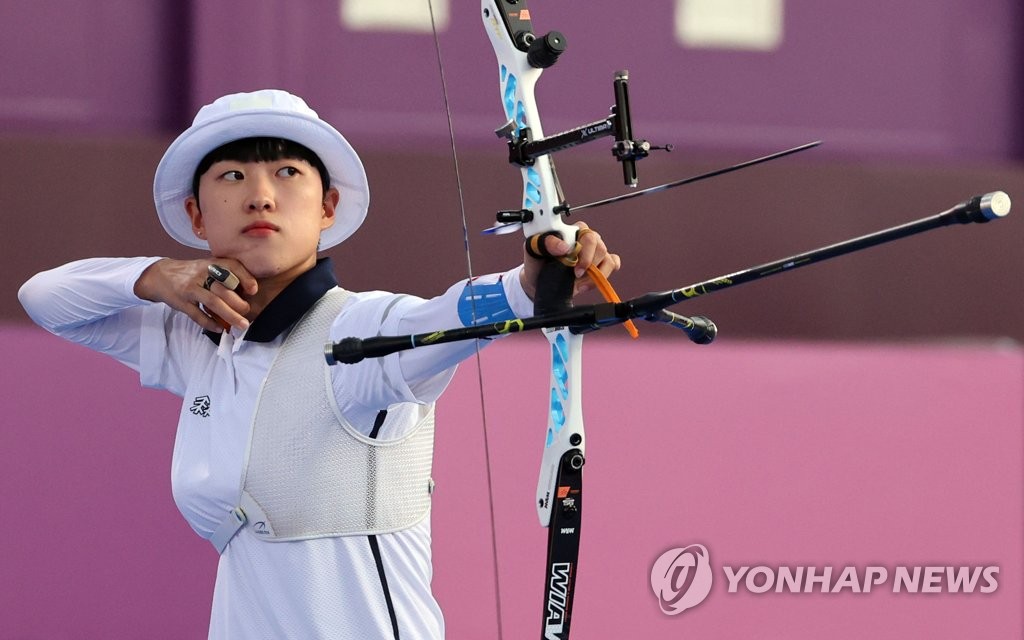 (도쿄=연합뉴스) 특별취재단 = 한국 여자 양궁 대표팀의 안산(20·광주여대)이 '사상 첫 3관왕'을 향해 순항했다.