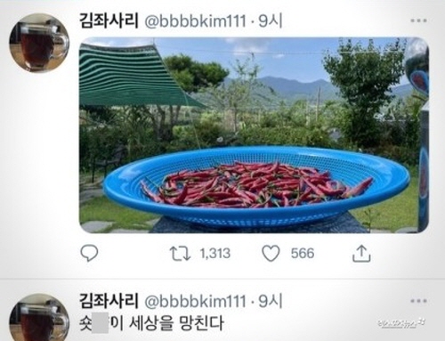 김기천은 29일 SNS에 "숏X이 세상을 망친다"라며 일침했다. 붉은색 고추 사진을 업로드하기도 했다. 'X'는 남성의 성기를 비하한 단어다.