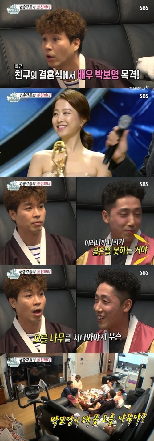 지인이 “이러니까 너희가 결혼을 못 하는 거다. 오를 나무를 쳐다봐야지”라고 하자 박수홍은 “박보영이 왜 못 오를 나무야? 이분 정말”이라며 발끈했다. 지인은 "네가?"라며, 손헌수는 "나이차가 많이 난다”라고 지적했다. 박수홍과 박보영은 스무살 차이다. 박수홍은 “어때. 속이면 되지”라며 멋쩍은 웃음을 지었다.