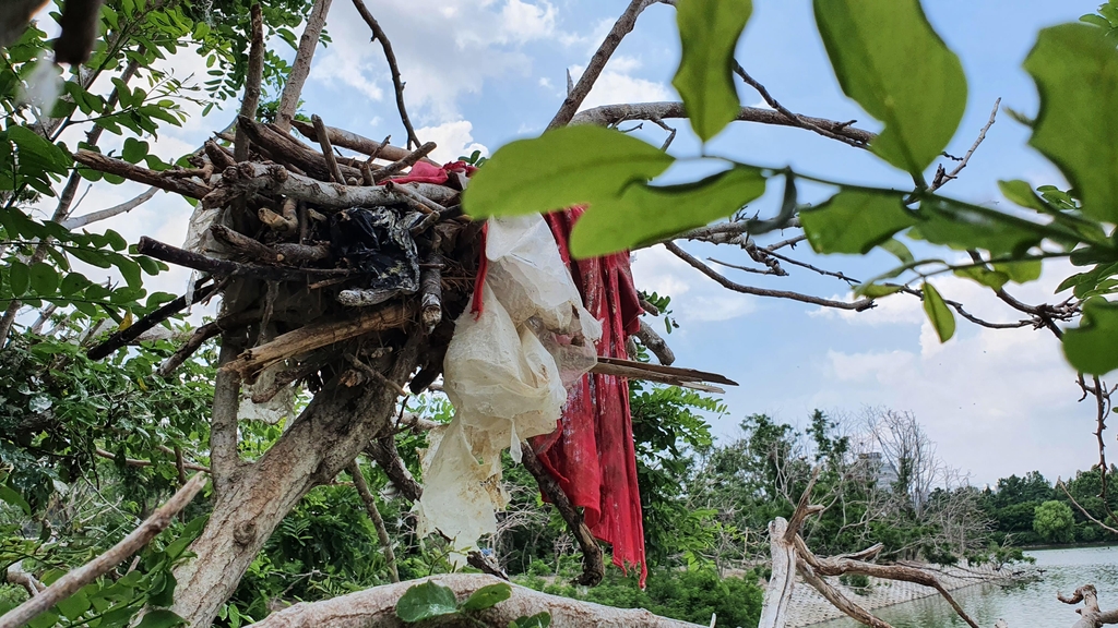 비닐로 만든 가마우지 둥지…수원 서호인공섬 쓰레기 오염 심각