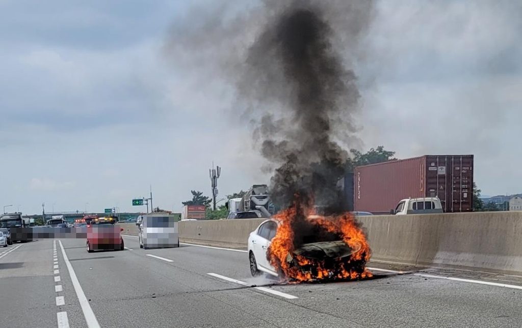 차량 화재 3개 차로 중 2개 차로가 통제돼 사고 수습까지 25분간 약 2㎞ 구간에서 정체가 발생했다.