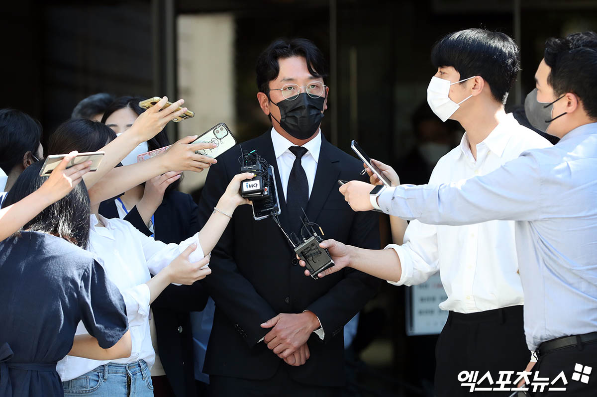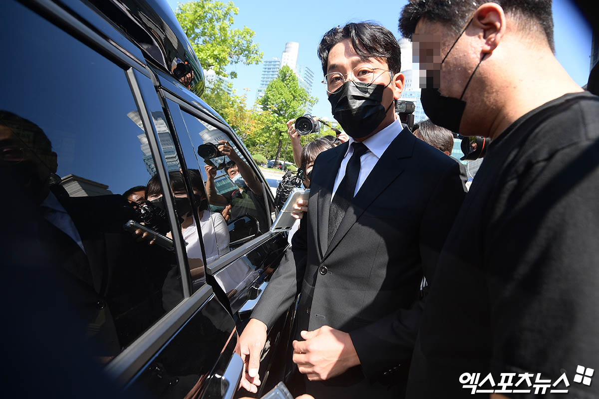이날 하정우는 검은색 양복과 검은색 마스크를 착용하고 안경을 쓴 채 법정에 나타났다. 공판에 참석하기 위해 나선 그는 고개를 숙인 채 어두운 표정을 지은 채 법정으로 향했다.