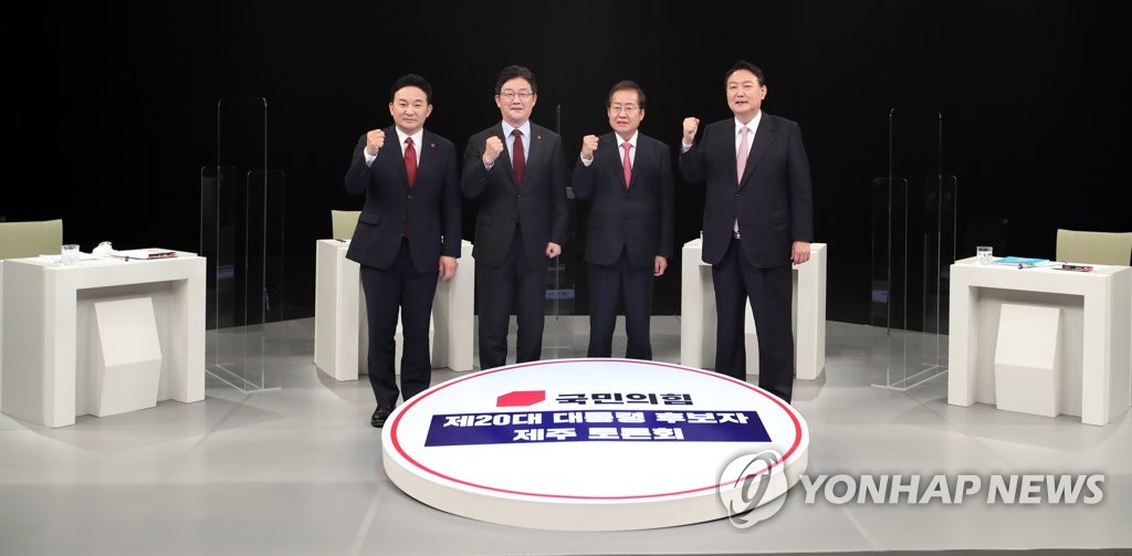 (서울=연합뉴스) 한지훈 홍준석 기자 = 국민의힘 대선경선 후보 4인의 13일 두번째 TV 토론에서 후보 간 '미묘한 전선'이 드러났다.