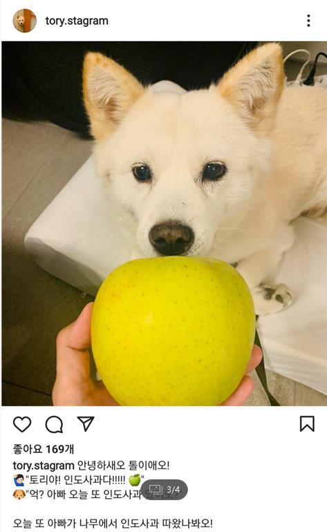 앞서 윤 전 총장의 '전두환 옹호' 발언 논란과 관련, 반려견 SNS에는 반려견 '토리'에게 사과를 주는 사진이 올라오면서 당 안팎에서 거센 비판이 제기된 상태다.