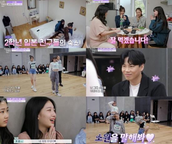 이들은 한국어 공부를 하며 입학 시험 중간 평가를 위해 안무를 맞춰보고 연습을 했다. 이때 오은영 박사가 등장, 준비해온 보쌈으로 먹방을 선보였다. 이어 오은영 박사는 타국 생활에서 가장 힘든점을 물었고 미나미는 “발음이 안 좋아서 말이 잘못 전달 될까 무섭다”고 전했다.