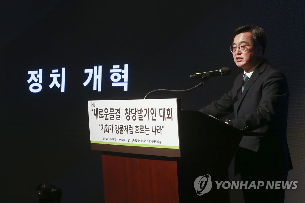 김 전 부총리는 이날 서울 마포구 누리꿈스퀘어에서 열린 '새로운 물결'(약칭 새물결) 창당 발기인 대회에서 발기인 대표로 나와 "지금 정치판의 강고한 양당 구조로는 대한민국이 20년 넘게 가진 구조적 문제를 해결하지 못한다"며 이같이 밝혔다.