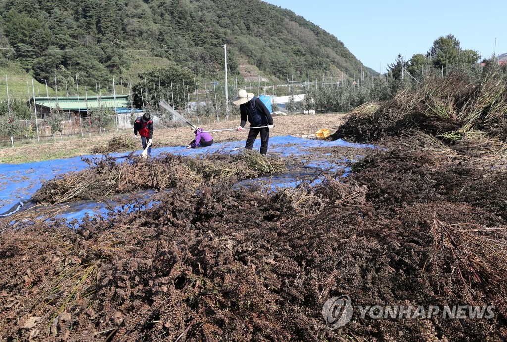농촌 들녘에는 농민들이 수확한 들깨를 터는 등 막바지 가을걷이에 분주한 하루를 보냈다.