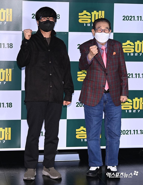 9일 서울 광진구 롯데시네마 건대입구에서 영화 '송해 1927'(감독 윤재호) 언론시사회가 열렸다. 이 자리에는 윤재호 감독과 방송인 송해가 참석했다.