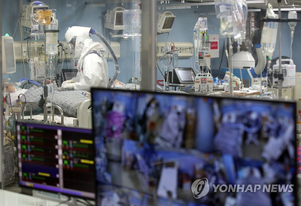 전국 중환자 병상 가동률도 72.8%(1천135개 중 826개 사용, 잔여 309개)로 직전일(71.5%)보다 1.3%포인트 상승했다.