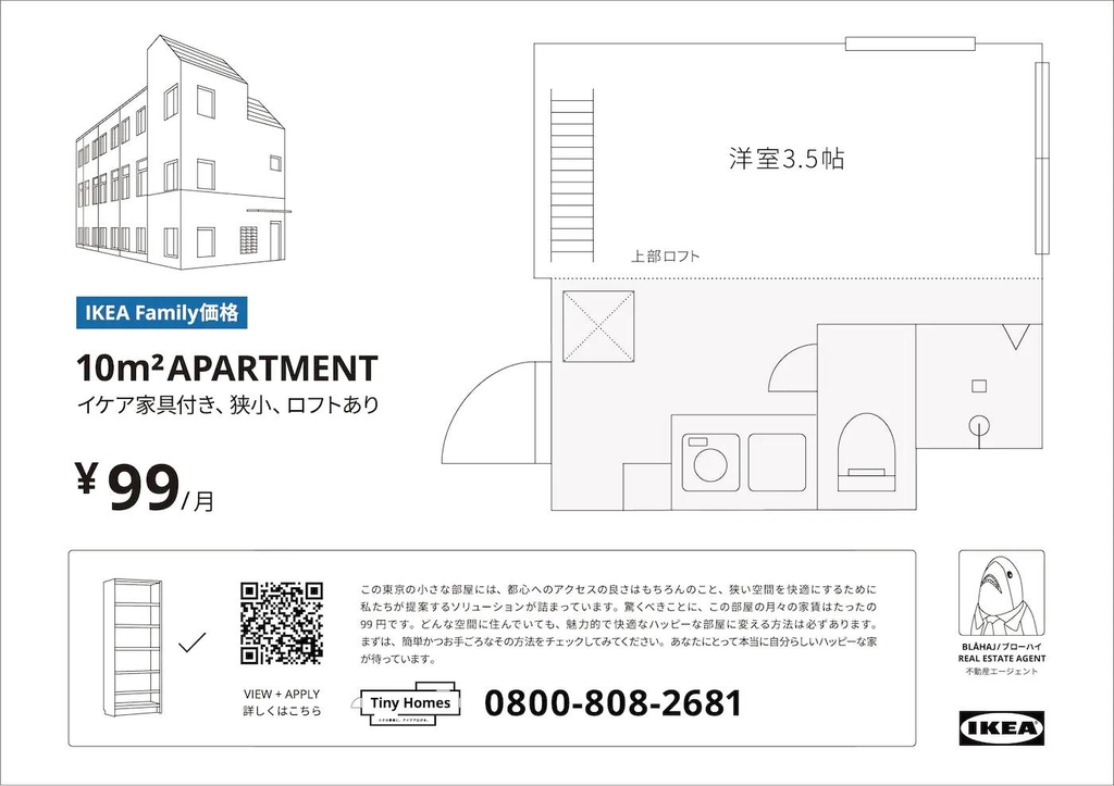 이케아는 '블라하지'라는 이름의 청상어 인형이 초소형 주택 전문 부동산 업자로 나오는 유튜브 시리즈를 만들어 홍보에 나섰다.