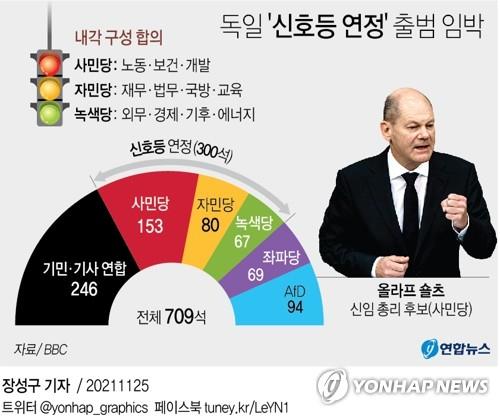 3개 정당이 연정 협약 체결을 마무리하면 내달 초에는 올라프 숄츠가 새로운 총리로 취임할 예정이다.