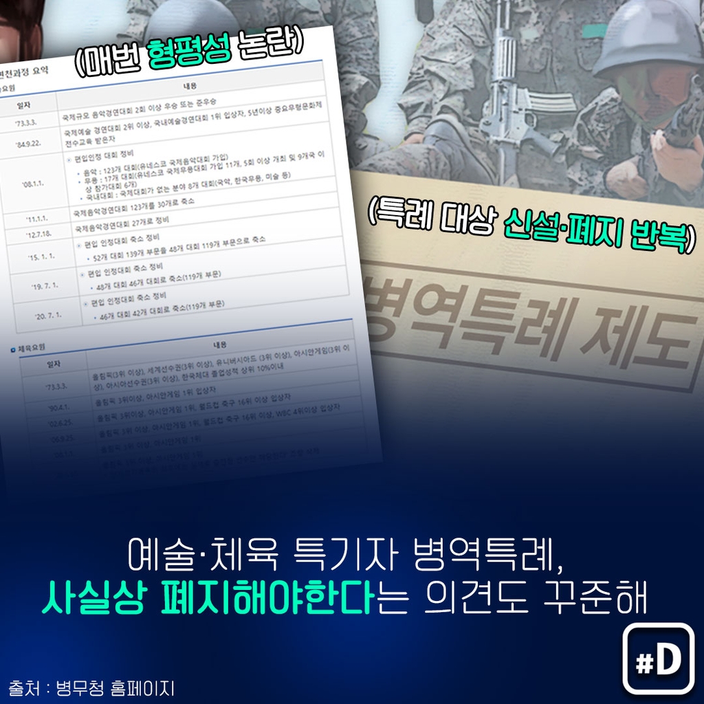 병역은 누구에게나 공평하게 적용되어야 하며 1970년대에 만들어진 특례 제도를 없애야 한다는 것입니다. 특례를 유지한다면 그 범위를 최소화하되 누구나 인정할 수 있는 객관적인 기준을 마련해야 한다는 겁니다.
