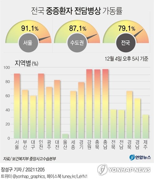 서울·인천 증증병상 가동률 91%…비수도권 병상대기 본격화
