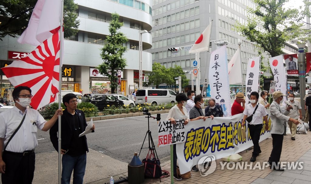 나고야에서는 폭죽이 배달되는 등 일부 지역에서 우익의 협박과 항의가 이어졌다.