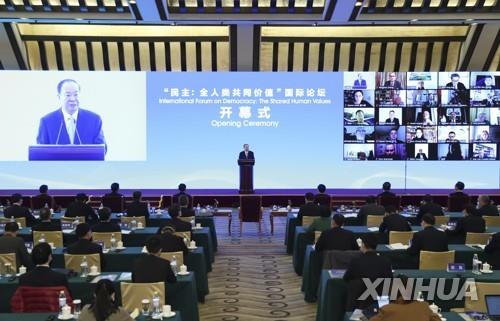 황쿤밍(黃坤明) 중국 공산당 중앙 선전부장은 기조연설에서 "민주에는 전세계 보편적인 모델이 없다"라며 미국식 민주주의를 겨냥했다.