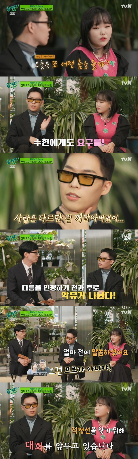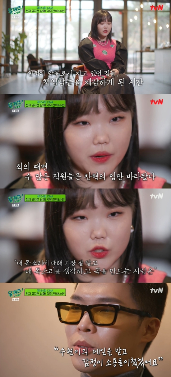8일 방송된 tvN '유 퀴즈 온 더 블럭'(이하 '유 퀴즈')에서는 'DNA' 특집으로 꾸며진 가운데 찬혁과 수현이 동반 출연한 장면이 전파를 탔다.