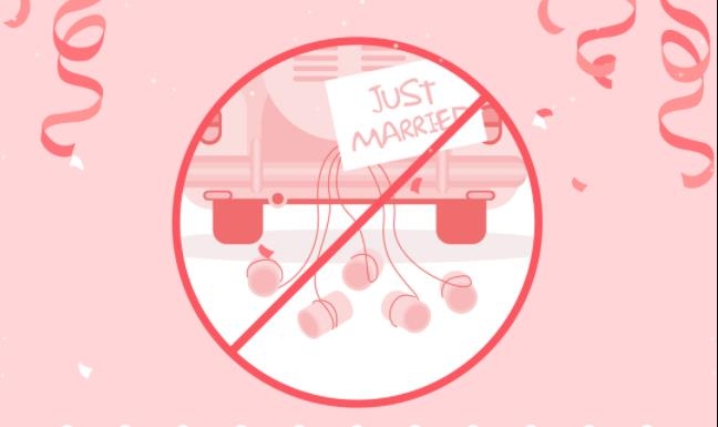 주로 차량 뒤편에 깡통들을 달았는데 요즘은 도로를 달리다가 깡통이 떨어져 나가서 다른 차량에 피해를 줄 수 있기 때문에 단속 대상이다.