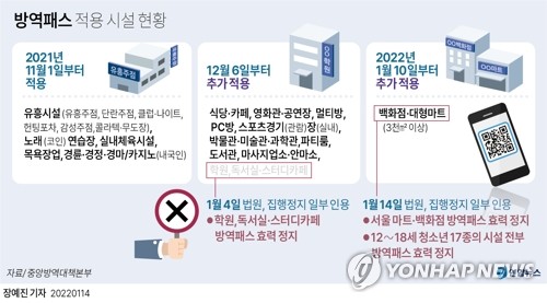 같은 법원 행정4부(한원교 부장판사)도 14일 조두형 영남대 의대 교수 등의 신청을 일부 인용해 서울 내의 3천㎡ 이상 상점·마트·백화점에 적용한 방역패스 효력을 정지하고, 12∼18세 청소년은 17종 시설 전부의 방역패스 효력을 정지했다.