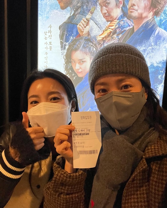 공개된 사진에는 한지민의 영화 '해적' 관람 인증샷이 담겼다. 절친한 사이인 한지민과 한효주는 마스크를 썼음에도 분위기 미인다운 아우라를 뿜어내 눈길을 끈다.