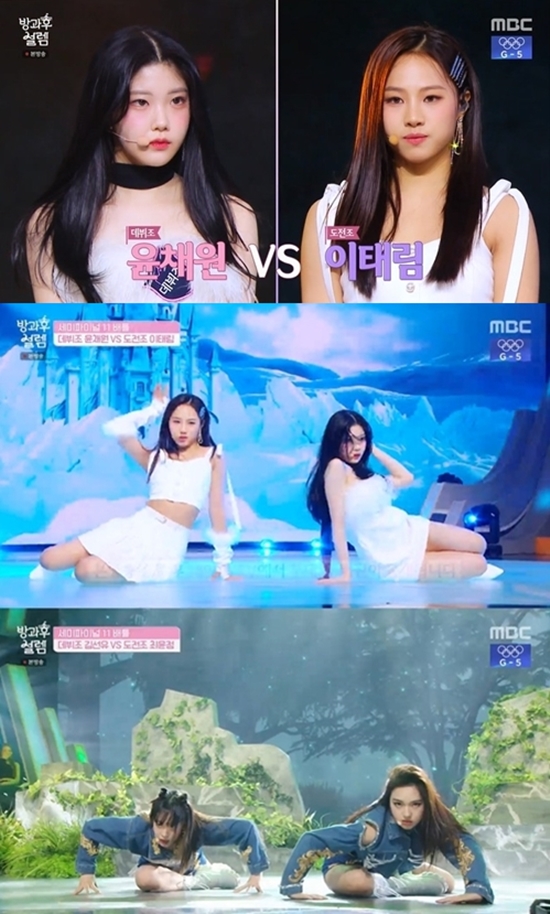 먼저 도전조 이태림과 데뷔조 윤채원이 맞붙게 됐다. 온라인 투표 1위인 윤채원과 21위인 이태림이이 배틀을 펼치는 만큼 결과에 대한 궁금증을 자극한 가운데, 두 사람은 로제의 ‘On The Ground’를 선곡했다.