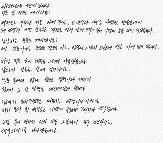 또 "지금까지 보내주셨던 따뜻하고 애정 어린 시선으로 저희 둘의 첫 발걸음을 기쁘게 응원해 주시리라 생각한다"고 전했다.