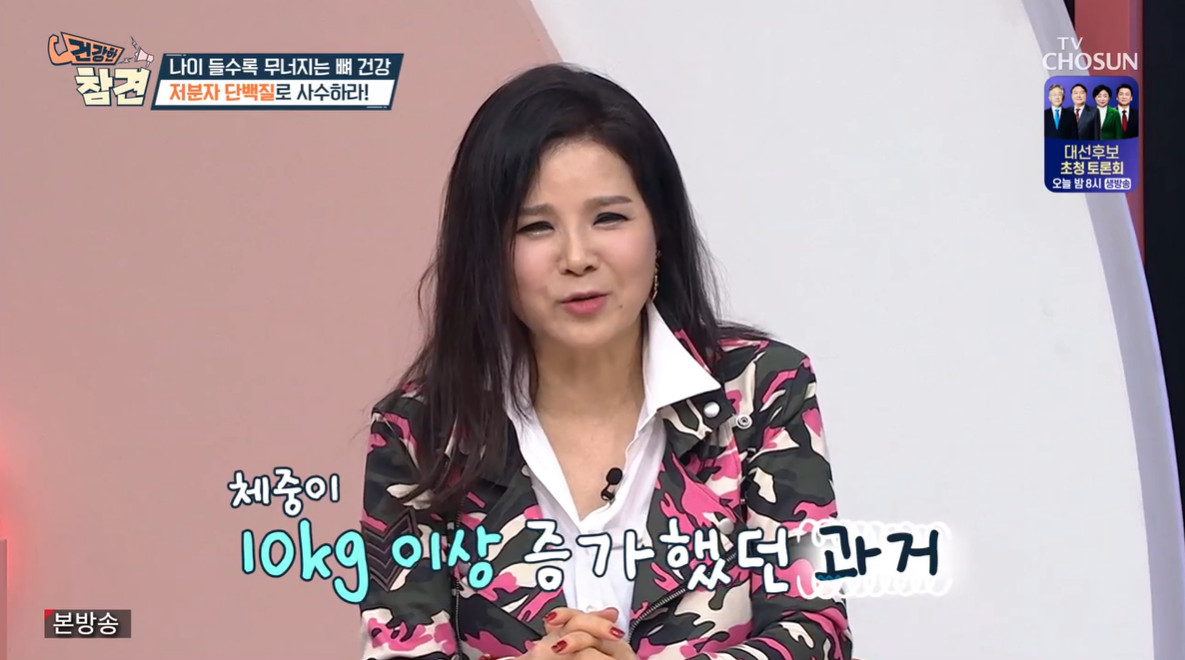 (엑스포츠뉴스 김수정 인턴기자) '건강한 참견' 장은숙이 과거 폭식으로 살이 급격하게 증가했음을 고백했다.